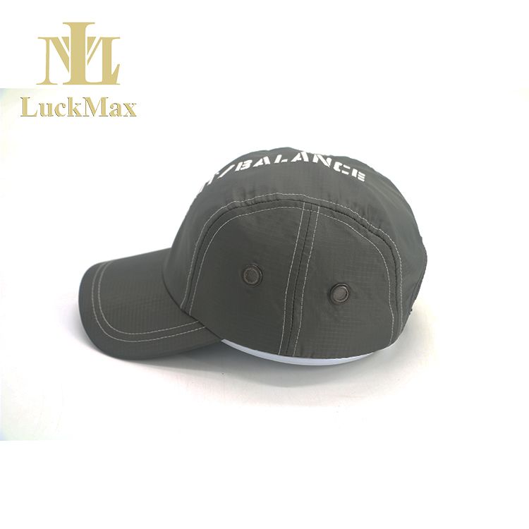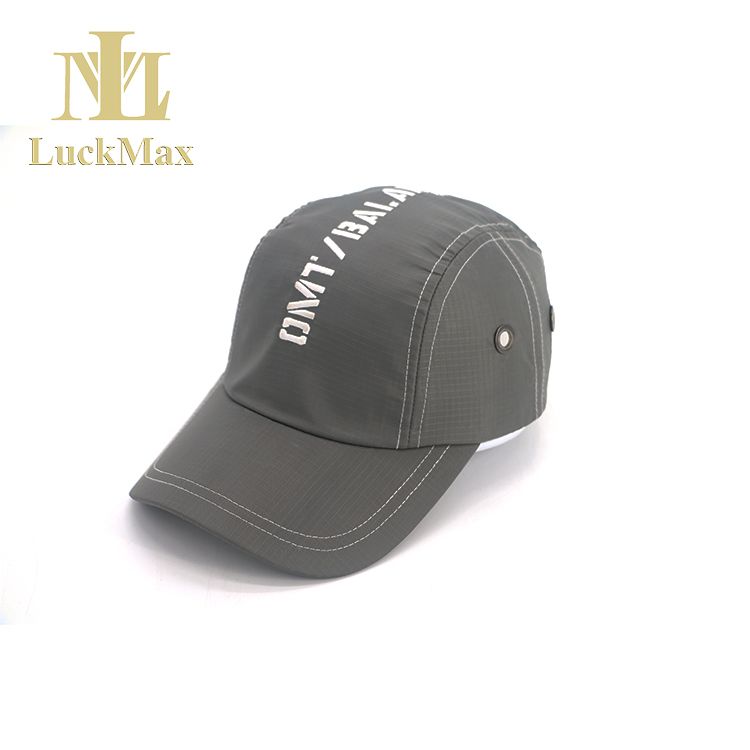 Nylon plaid 5 panel hat Elastic rope Back closure cheap sports caps wholesale mens sports cap embroidery logo
